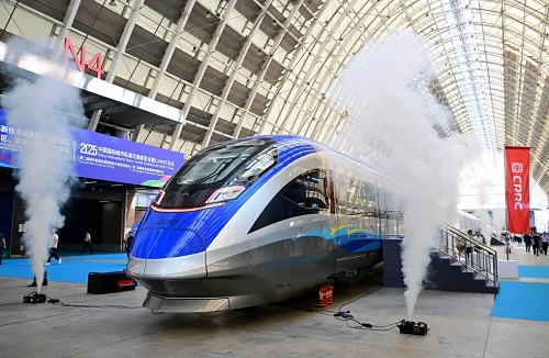 2025年9月18日,由中國(guó)中車(chē)自主研制且擁有完全自主知識(shí)產(chǎn)權(quán)的首列中國(guó)標(biāo)準(zhǔn)智能市域列車(chē)暨京雄快線列車(chē)在青島亮相。新華社記者 李紫恒 攝