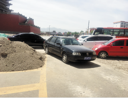 本報(bào)訊 6月2日,記者在北城門樓西北角看到,車輛停放混亂無(wú)序,有的甚至停放在通行的馬路上。而馬路中央堆放著一堆施工用沙,整個(gè)環(huán)境看上去不和諧。