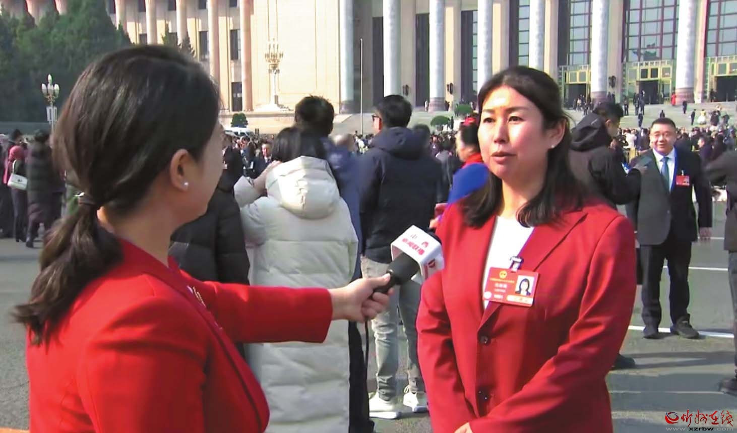 圖為全國人大代表范銀蓮接受記者采訪。