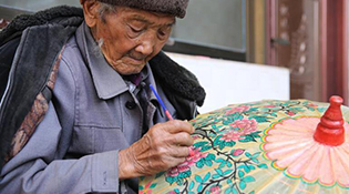 11月17日,非遺傳承人鄭映海在繪制油紙傘。 云南省騰沖市固?hào)|鎮(zhèn)滎陽村有著上百年制作油紙傘的歷史,但機(jī)制雨傘的出現(xiàn)和其價(jià)格優(yōu)勢,讓手工制作的油紙傘市場越來越小。近年來,隨著當(dāng)?shù)芈糜螛I(yè)的興起,樣式別致、圖案精美的油紙傘作為工藝品受到游客青睞,傳承百年的油紙傘煥發(fā)了新的生機(jī)。 新華社發(fā)(梁志強(qiáng) 攝)