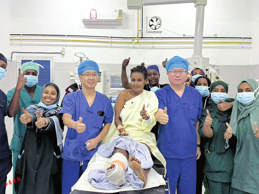 在麻醉的作用下,患者全程清醒、無痛。骨科醫(yī)生楊青則憑借熟練的手術(shù)操作,成功為她實施了創(chuàng)面皮膚軟組織清創(chuàng)術(shù)?;颊咝g(shù)后恢復良好,對醫(yī)療隊的精湛醫(yī)術(shù)和無私奉獻表示由衷的感謝。她表示,從未想過在吉布提能夠接受到如此卓越非凡的醫(yī)療服務,感謝中國醫(yī)療隊的到來,為自己帶來了希望。
