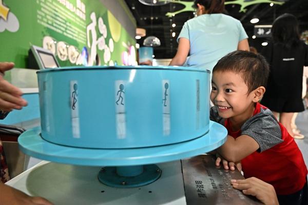 8月20日,山西省太原市,兒童在山西省科技館內(nèi)觀察視覺暫留現(xiàn)象。今年暑假期間,山西省科技館推出“科學(xué)嗨一夏”系列科普活動(dòng),旨在激發(fā)不同年齡段孩子們的好奇心和探索欲。視覺中國(guó)供圖