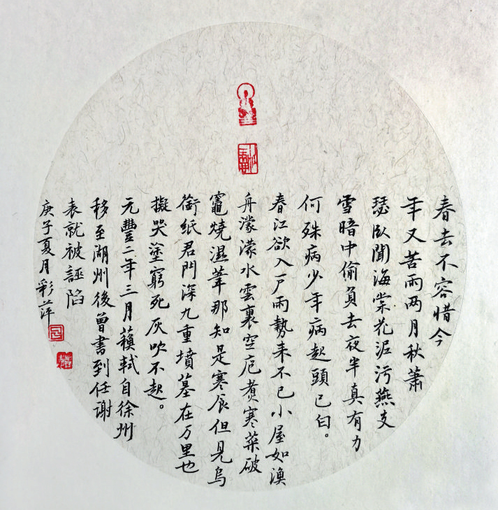 遺山詩社近期刊登的呂彩萍作品專輯,內(nèi)容上大致可分兩類:一是有關(guān)抗疫的時(shí)事情狀;二是吟詠梅蘭竹菊等花草植物以及四季更替、重要節(jié)日等,托風(fēng)雅之詞,明自我心性。從藝術(shù)角度看,這些作品或沉思、或靈動,思緒開闊,韻致嫣然,詞畫有機(jī)相融,用典自如妥切,抒情性于辭采,詠雅志而不自矜。涵詠其間,若瓊花滿地,玉階生輝,天籟清風(fēng)吹散密云,月下疏影暗吐清香。仔細(xì)品讀,可感受到作品呈現(xiàn)出的四種藝術(shù)之美,本文試作解讀。