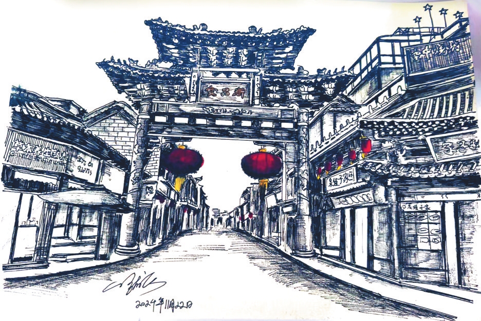作為一種獨(dú)特的藝術(shù)形式,鋼筆畫以其細(xì)膩的線條、嚴(yán)謹(jǐn)?shù)臉?gòu)圖,通過控制握筆的速度和力度,畫出不同粗細(xì)的線條,從而表現(xiàn)物象。岢嵐縣美術(shù)教育工作者侯龍飛近年來通過鋼筆畫記錄生活、表達(dá)情感,他的系列鋼筆畫《忻州古城》《岢嵐街景》等作品描繪城市變遷與時(shí)代風(fēng)貌走紅網(wǎng)絡(luò)。