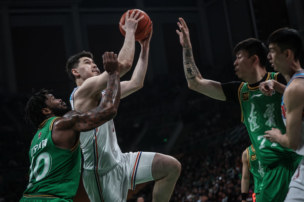 遼疆大戰(zhàn)跌宕起伏,比賽懸念留到最后一刻。盡管核心球員趙睿、李炎哲缺陣,加上齊麟腳腕受傷無(wú)法出戰(zhàn),新疆隊(duì)輪轉(zhuǎn)陣容略顯單薄,但仍給遼寧隊(duì)造成不小麻煩。遼寧隊(duì)趙繼偉和弗格先后串聯(lián)球隊(duì),里突外投撕開(kāi)對(duì)手防線(xiàn),迫使新疆隊(duì)超過(guò)5分鐘沒(méi)有運(yùn)動(dòng)戰(zhàn)得分,以30:19結(jié)束首節(jié)。次節(jié),新疆隊(duì)充分利用籃板球優(yōu)勢(shì),一度將分差追至2分,但球隊(duì)半場(chǎng)仍以49:55落后于遼寧隊(duì)。