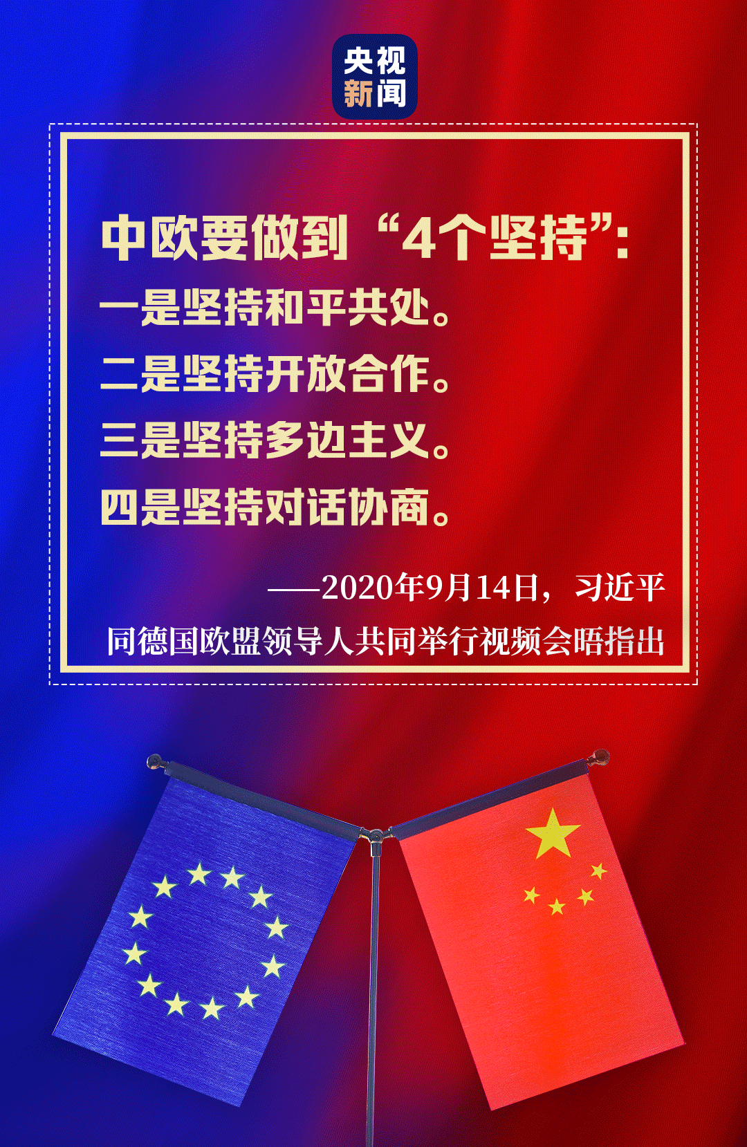 中歐相互尊重、求同存異、和而不同,不斷增進(jìn)彼此理解和信任,在合作中擴(kuò)大共同利益,在發(fā)展中破解難題。在當(dāng)天的視頻會晤中,習(xí)近平強(qiáng)調(diào),中歐要做到“4個(gè)堅(jiān)持”。