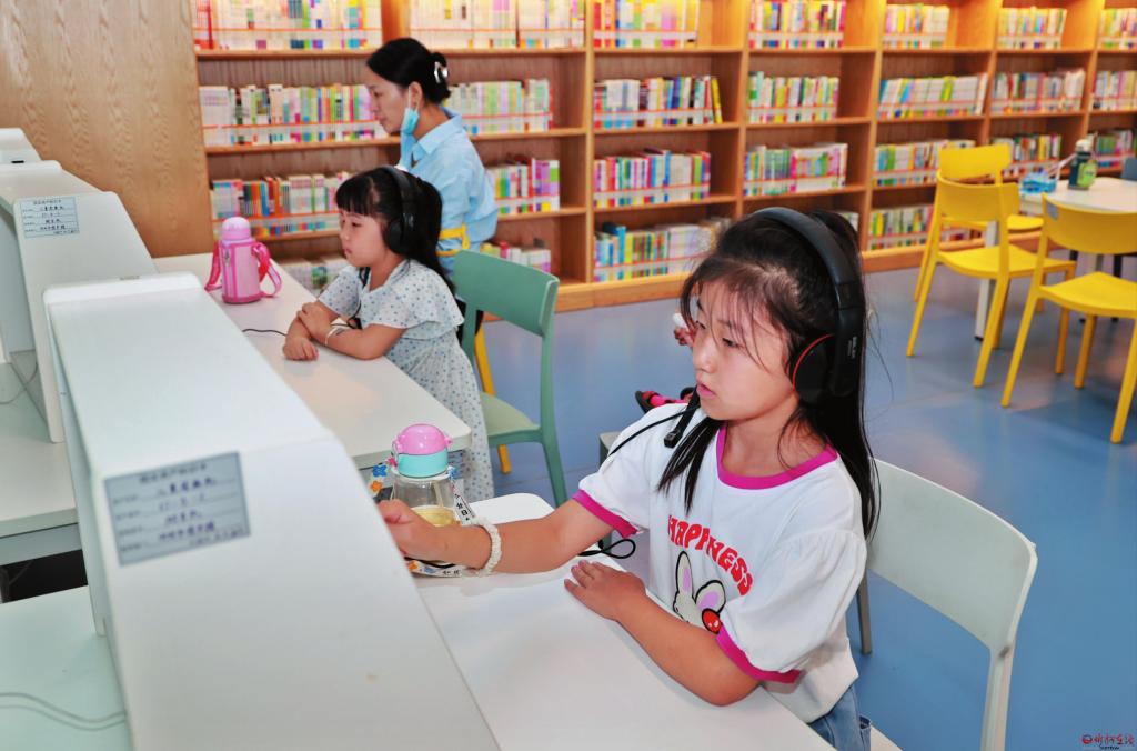 多彩暑期是孩子們博覽群書的最佳時期。7月28日,在市圖書館,小讀者們在兒童閱讀機(jī)上體驗點觸、互動學(xué)習(xí)的快樂。(