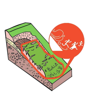 2.遭遇高速滑坡時(shí),如滑坡呈整體滑動(dòng)時(shí),迅速抱住身邊的樹(shù)木等固體物體,也可以躲避在結(jié)實(shí)的障礙物下。不能將避災(zāi)場(chǎng)地選擇在滑坡的上坡或下坡。