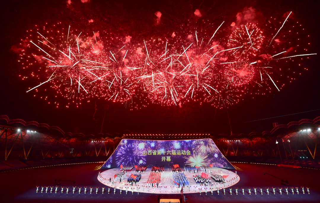 富有地域特色的暖場表演過后,在一萬多名現(xiàn)場觀眾聲震云霄的倒計(jì)時(shí)中,開幕儀式正式開始。國旗和會旗入場儀式后,各代表隊(duì)運(yùn)動(dòng)員、教練員在引導(dǎo)員和執(zhí)旗手的引導(dǎo)下,闊步入場。大同和朔州作為東道主,壓軸亮相,得到了觀眾的熱烈歡呼。之后,升國旗儀式和升會旗儀式莊嚴(yán)進(jìn)行,山西省第十六屆運(yùn)動(dòng)會宣布開幕。