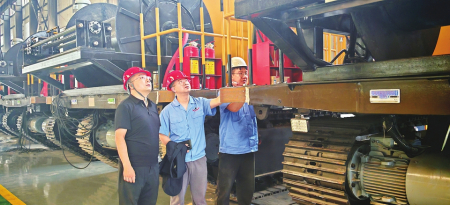 ①太原科技大學(xué)李占龍博士(左一)為山西佳誠(chéng)液壓有限公司提供技術(shù)指導(dǎo)。 本報(bào)通訊員攝
