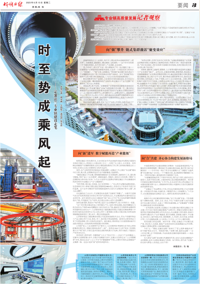 一系列成果已經顯現?!抖ㄏ宸ㄌm專業(yè)鎮(zhèn)實施方案》《定襄法蘭專業(yè)鎮(zhèn)三年行動計劃》《定襄縣鍛造產業(yè)數字化、智能化發(fā)展的實施方案》等系列規(guī)劃和政策性文件先后出臺;專業(yè)鎮(zhèn)重大項目清單、招商引資清單完整出爐;產業(yè)擴規(guī)提質、數字化賦能、創(chuàng)新能力提升、平臺建設、資本助力、穩(wěn)外貿拓市場、要素集聚、人才培育、優(yōu)化環(huán)境、宣傳推介等十大行動握指成拳、合力攻堅;三大平臺、五個中心雛形初現。