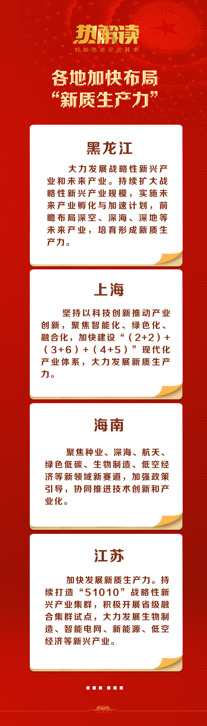加快發(fā)展新質(zhì)生產(chǎn)力已成為2024年推進(jìn)經(jīng)濟(jì)社會(huì)高質(zhì)量發(fā)展的主旋律。各地?fù)屪C(jī)遇,紛紛布局。在各省區(qū)市2024年政府工作報(bào)告中,多地將加快培育新質(zhì)生產(chǎn)力列為重點(diǎn)工作任務(wù)。