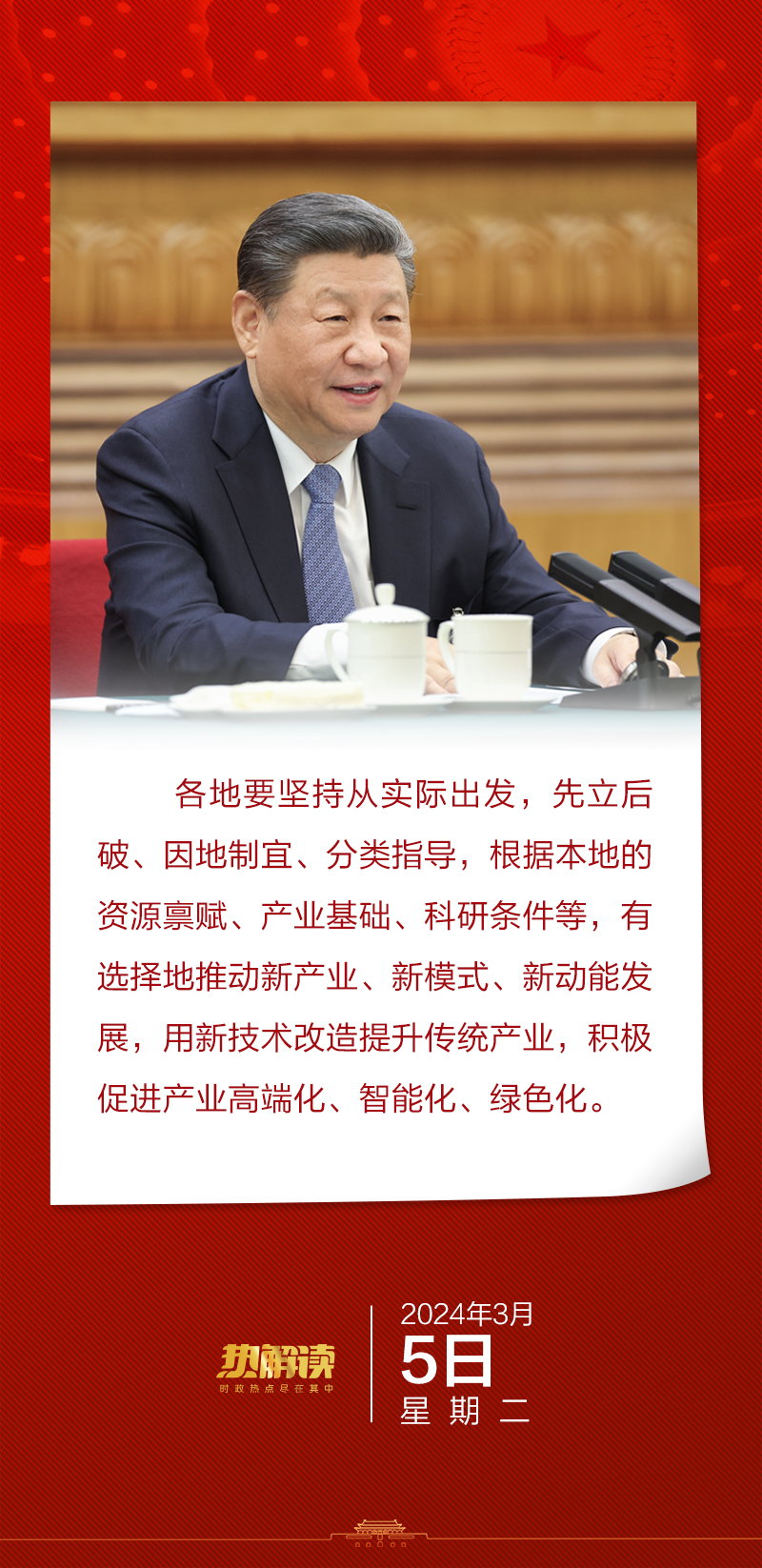 “新質(zhì)生產(chǎn)力”是總書(shū)記談到的重要關(guān)鍵詞。總書(shū)記指出,“各地要堅(jiān)持從實(shí)際出發(fā),先立后破、因地制宜、分類(lèi)指導(dǎo)”,“積極促進(jìn)產(chǎn)業(yè)高端化、智能化、綠色化”。