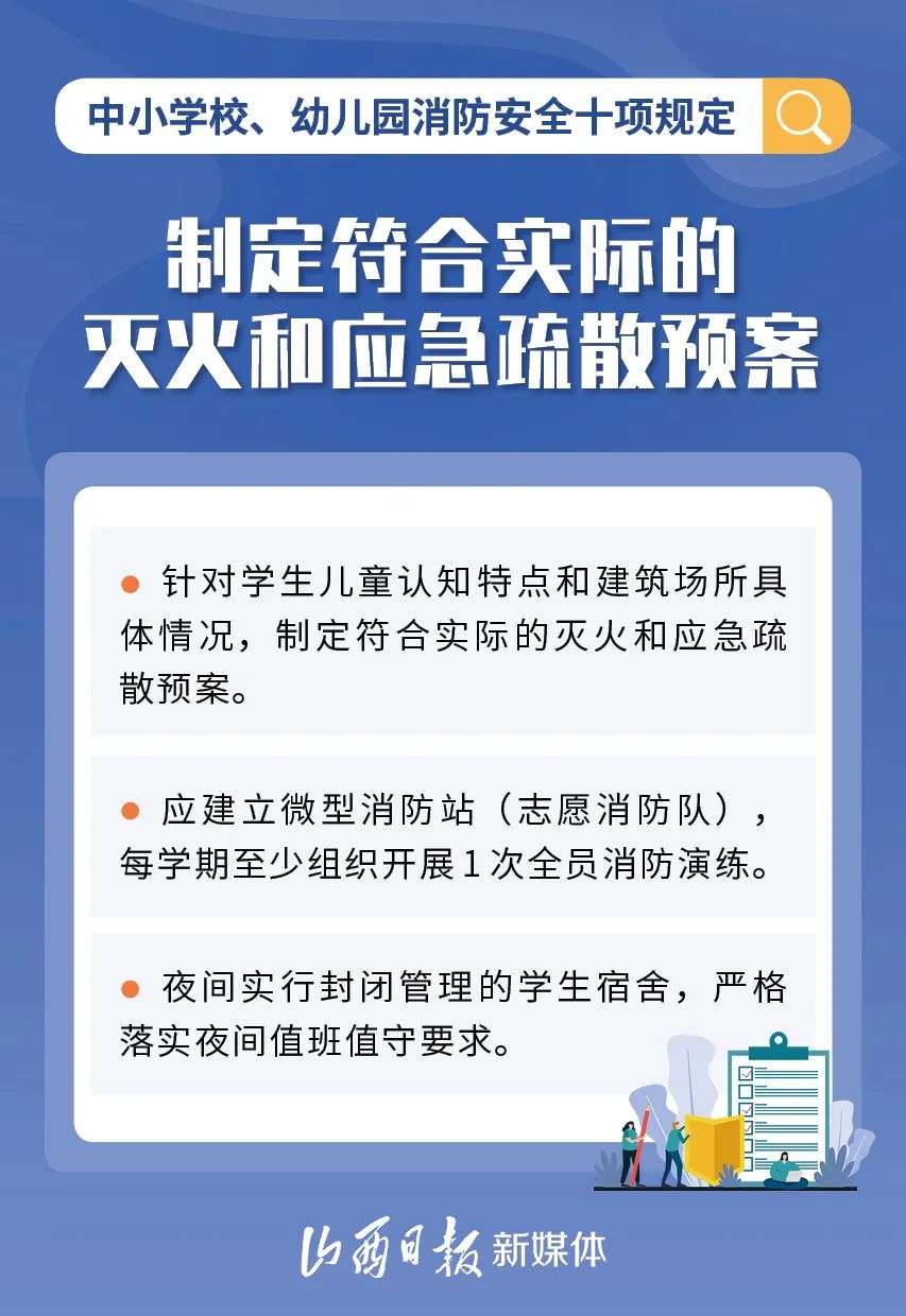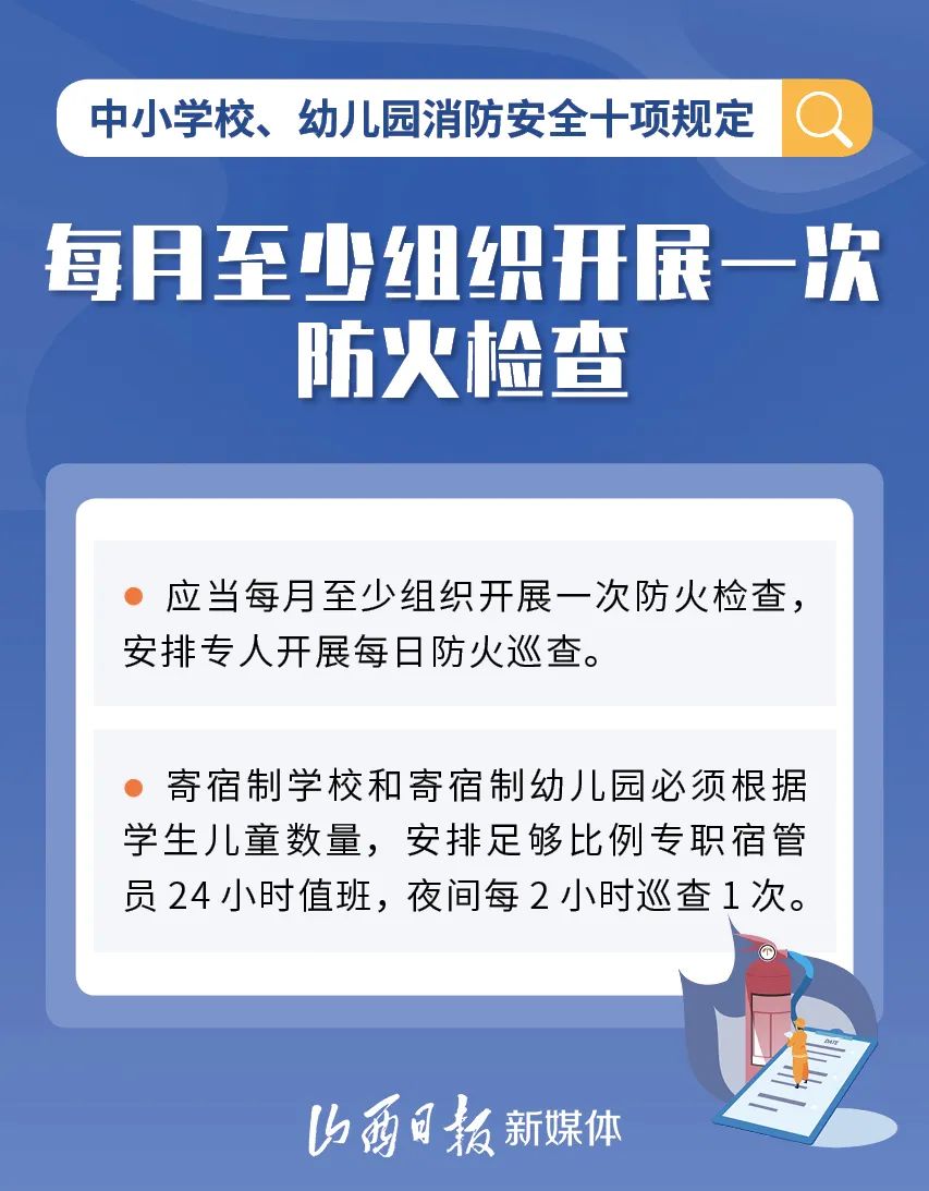 為加強(qiáng)中小學(xué)校、幼兒園消防安全管理,近日,教育部、國家消防救援局研究制定了《中小學(xué)校、幼兒園消防安全十項規(guī)定》,具體規(guī)定內(nèi)容如下。