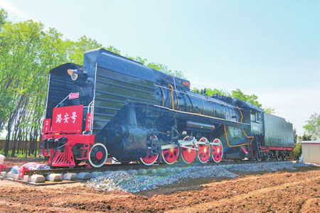 如今,大東溝成了煤礦生產(chǎn)設(shè)備的“露天博物館”,陳列著井下使用過(guò)的綜采支架、掘進(jìn)機(jī)、齒軌車(chē)、風(fēng)機(jī)、高壓開(kāi)關(guān)、移動(dòng)變電站、礦用潛水泵等40余種、近300件設(shè)備,為中國(guó)煤礦不同歷史發(fā)展階段保留了珍貴標(biāo)本。其中,有兩處展品更為引人注目:一是一臺(tái)時(shí)速80公里、牽引力324千牛的前進(jìn)型蒸汽機(jī)車(chē),1975年由大同機(jī)車(chē)廠生產(chǎn),1994年由潞安集團(tuán)統(tǒng)一安排承擔(dān)石圪節(jié)煤礦和兄弟礦井的煤炭外運(yùn)及漳澤電廠的煤炭直送任務(wù),是潞安集團(tuán)首批鐵路運(yùn)輸牽引機(jī)車(chē),直到2007年機(jī)車(chē)轉(zhuǎn)型升級(jí)后停用。如今,這臺(tái)蒸汽機(jī)車(chē)已經(jīng)成為一代人的記憶,也是不少人打卡的網(wǎng)紅地標(biāo)。還有一處是給人留下深刻印象的軌道墻。兩道長(zhǎng)6米的水泥墻,墻體里鑲嵌著從石圪節(jié)井下運(yùn)上來(lái)的標(biāo)有不同年代的道軌,如產(chǎn)于1902年的德國(guó)道軌、產(chǎn)于1905年的比利時(shí)道軌、產(chǎn)于1915年的由漢陽(yáng)鐵廠制造的道軌等。這些標(biāo)有生產(chǎn)年代的道軌,當(dāng)年在井下作為支撐物或巷道頂棚使用,如今成為石圪節(jié)煤礦發(fā)展歷程的見(jiàn)證,默默地向人們?cè)V說(shuō)石圪節(jié)開(kāi)采歷史的久遠(yuǎn)。
