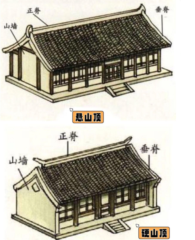 圖為懸山頂和硬山頂?shù)膮^(qū)別 圖片來源于網(wǎng)絡