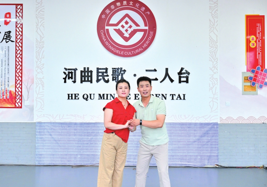 走進(jìn)河曲縣白樸公園,一段清亮婉轉(zhuǎn)的唱腔便隨風(fēng)入耳——河曲縣民歌二人臺(tái)藝術(shù)團(tuán)演員鄔光正和同事們?nèi)橥度耄蚰ゴ笮头沁z音樂劇《大河長歌》。他額角滲著細(xì)密的汗珠,當(dāng)唱到“好兒女今日唱長歌,勝過了前輩了不得”時(shí),突然停了下來,對(duì)搭檔說:“再來一遍,剛才那口氣沒頂滿?!边@份對(duì)細(xì)節(jié)的較真,藏著他對(duì)二人臺(tái)藝術(shù)最樸素也最深厚的敬畏。